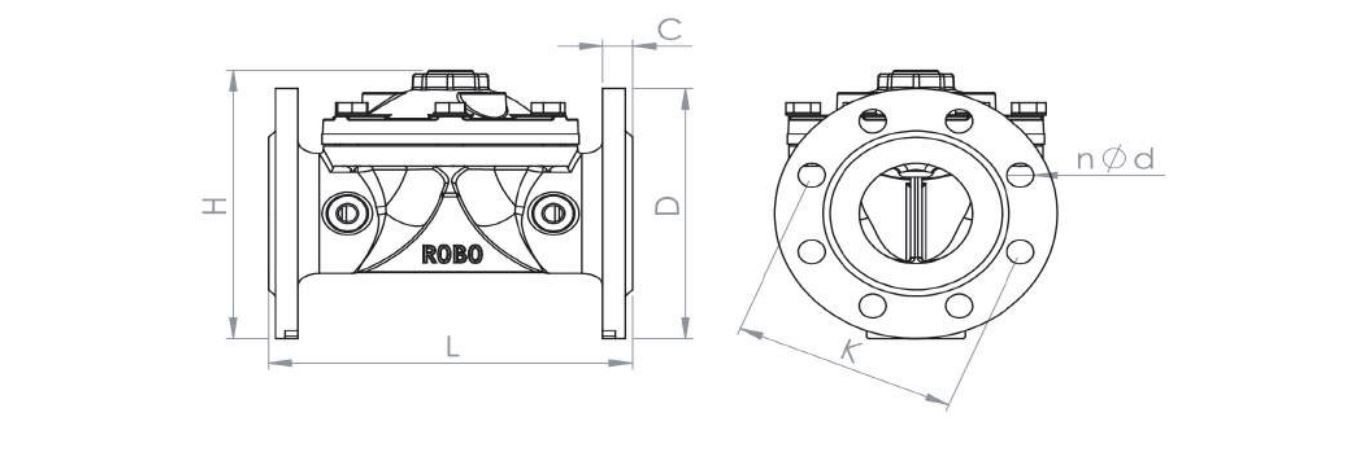 Ghi chú: Thông số D và K thể hiện đường kính mặt bích và khoảng cách tâm lỗ bắt bulông theo tiêu chuẩn PN10/PN16. Chiều dài L và chiều cao H giúp xác định không gian lắp đặt phù hợp.