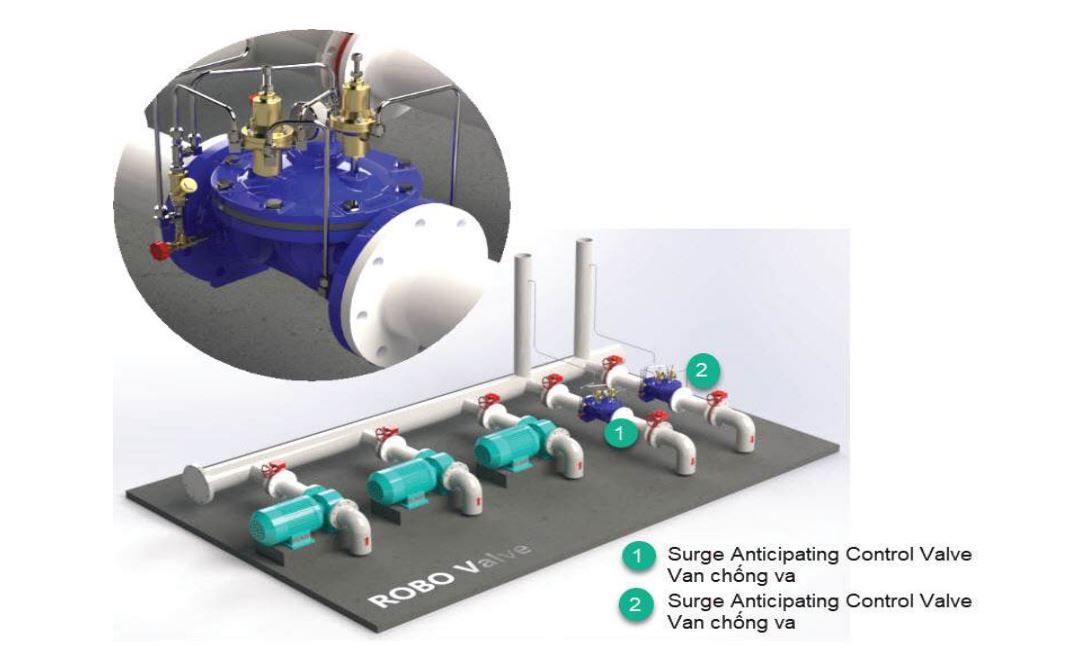 Van chống va Robo được lắp đặt trong hệ thống cấp nước chính với mục tiêu bảo vệ hệ thống đường ống khỏi hiện tượng búa nước (surge).