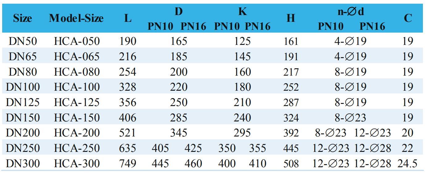 Tùy theo hệ thống sử dụng và yêu cầu kỹ thuật, khách hàng có thể lựa chọn các kích thước khác nhau từ DN50 đến DN300, với mức áp suất PN10 hoặc PN16, và màu sơn phù hợp.
