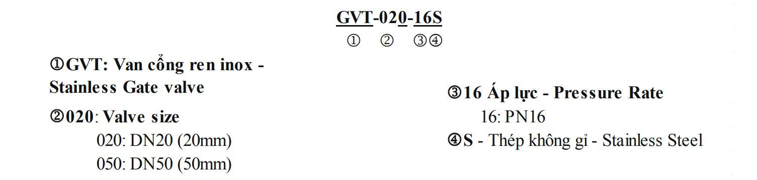 Để giúp việc lựa chọn và đặt hàng trở nên nhanh chóng, chính xác, nhà sản xuất van cổng ren Inox Robo quy định mã sản phẩm theo chuẩn ký hiệu rõ ràng. Cấu trúc mã đặt hàng bao gồm 4 thành phần cơ bản như sau: